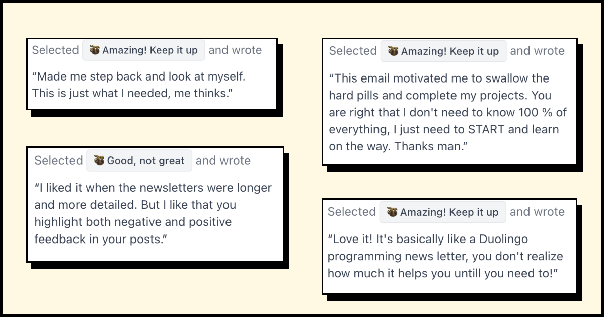 So I put together a short feedback form where you can share what you like, what you don’t, and what you’d like to see more of: